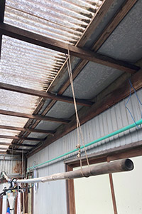 谷樋を直すには既設ポリカ屋根の取替も必要だったため、谷樋とポリカ屋根を全体的に取り換える見積もりと、部分的にコーキングをして補修する見積もりの2パターンを用意し、どちらの方法で工事するのか検討して頂きました。