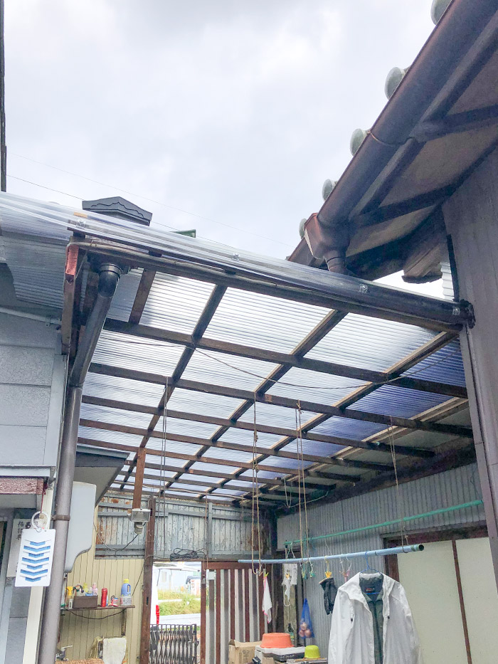 雨漏りを解消した谷樋・ポリカーボネートの屋根