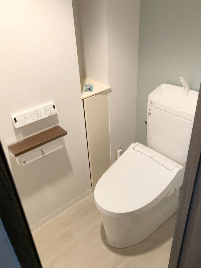トイレ内はクロスやクッションフロアを変えたことにより、だいぶ雰囲気も変わり、おしゃれな空間になりました。