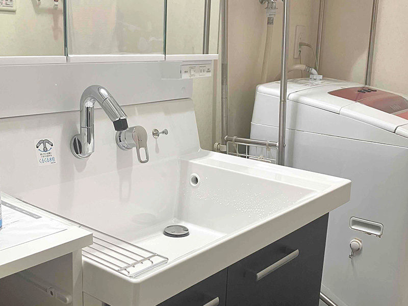 収納量&使い勝手アップの洗面化粧台と、掃除ラクなガラストップコンロ